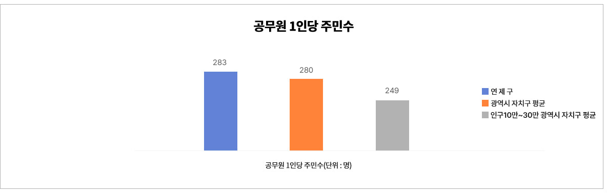 | 구 분 | 인구수 | 공무원 수 | 1인당 주민수 | |