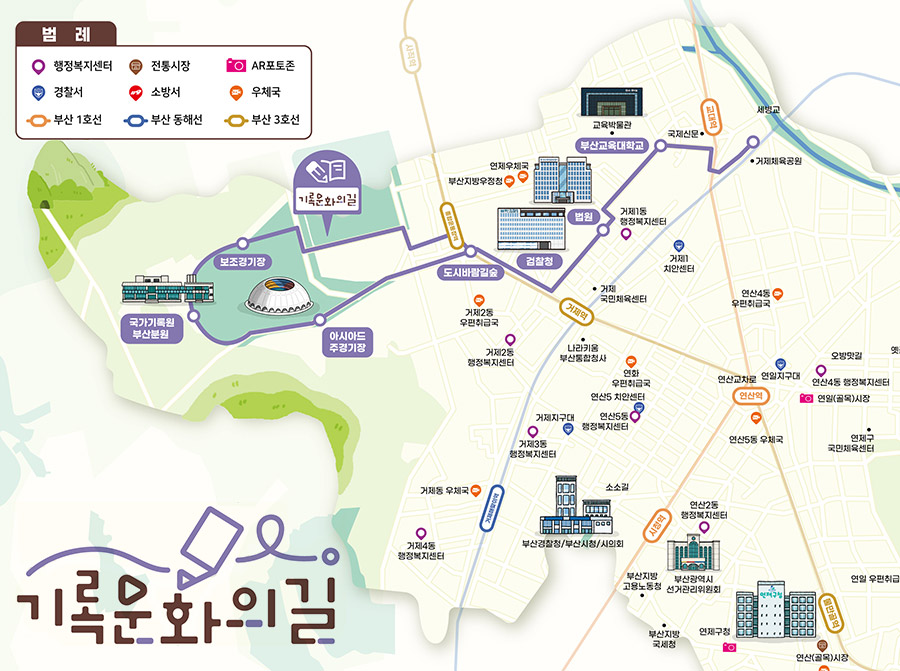 - 위치종합운동장역 2 · 4번 출구 ~ 거제역 1 · 3번, 2 · 4번 출구 구간